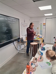 Les CM2 ont découvert la langue provençale grâce à une atelier de présentation du Félibrige, de traduction des prénoms et de découverte d'un instrument traditionnel.